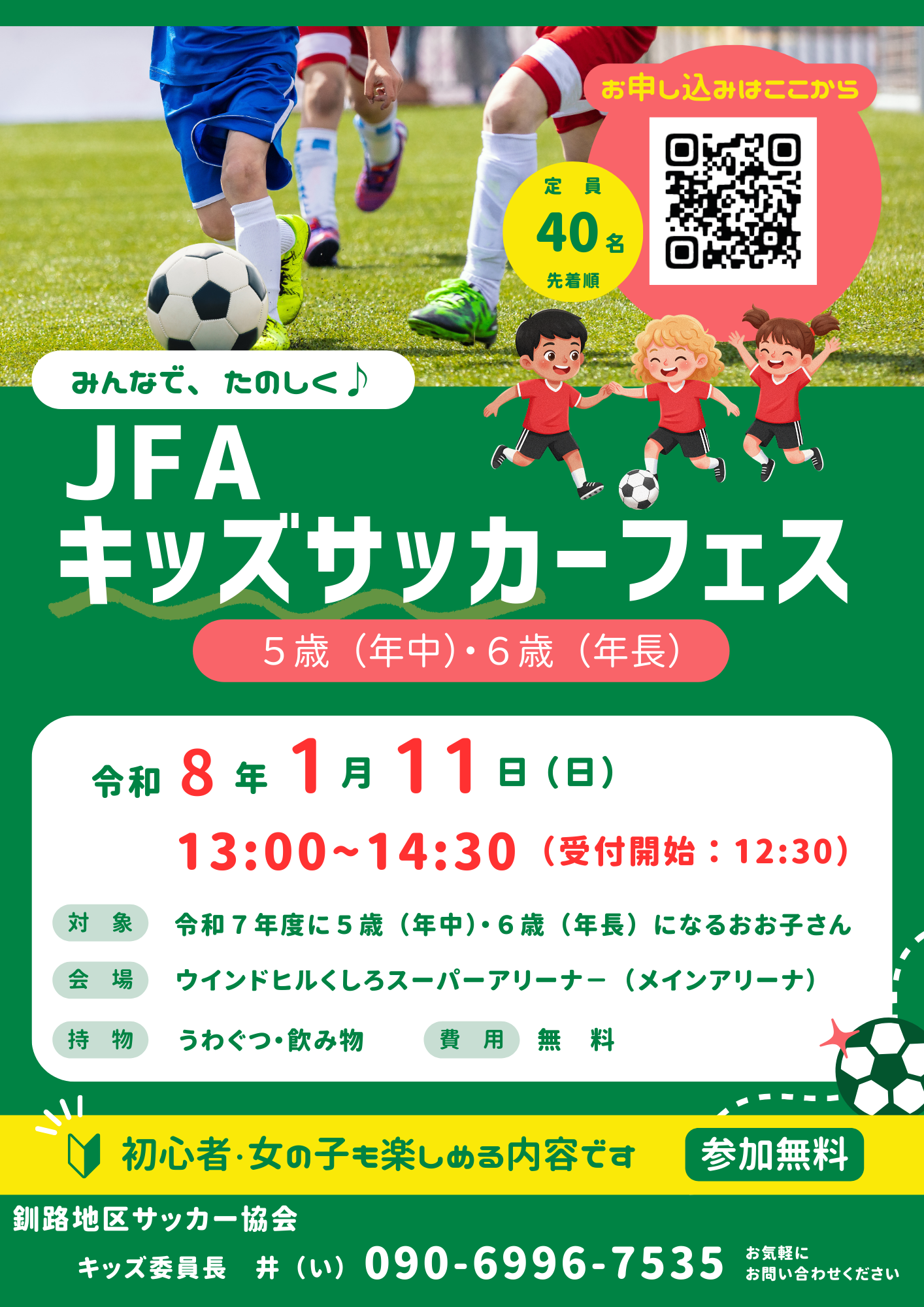 JFAキッズサッカーフェスティバルのご案内 令和7年度に5歳・6歳になるお子さんを対象としたキッズサッカーフェスを開催します。